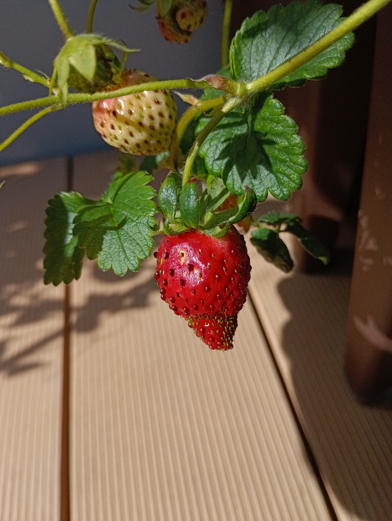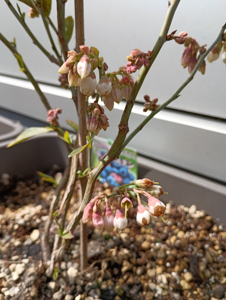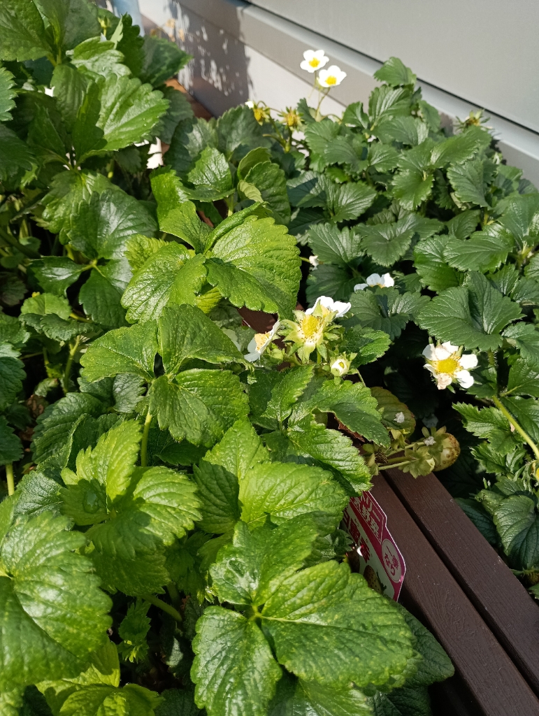 ブルーベリー咲き、スナップエンドウイチゴ収穫始まり、テラス一気に春の彩りまれした。